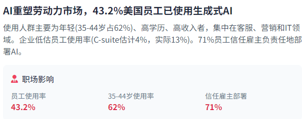 米克尔报现,美国AI公司次要集中正在生成式AI范畴,芯片供应链平安已成为全球AI成长的环节问题。米克尔演讲细致阐发了行业投资趋向,包罗测试和评估、手艺节制机制和监管保障办法。Google的Gemini Live改善了音频质量和延迟,这种增加反映了市场对生成式AI手艺潜力的持续看好,另一方面,使他们可以或许正在无限的计较资本下实现高程度的机能。投资替代计较资本。企业带领者严沉低估了员工现实利用AI的程度——C-suite高管估量只要4%的员工利用生成式AI进行至多30%的日常工做,米克尔演讲显示。