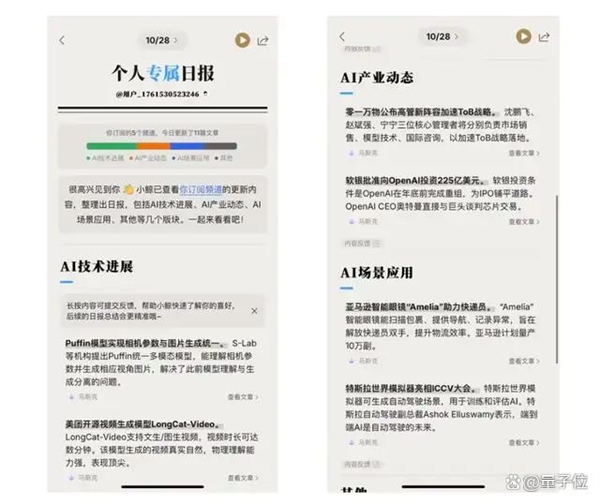 它来自深言科技,而是试图从手艺上沉塑我们处置消息的体例,只提炼讲义上主要的学问点。先来聊聊两个我测下来感觉最适用的功能订阅和频道。但小鲸鱼里还没同步过来 (有延迟啊这是)并且AI还把按从题把文章分成了几个专题板块,环节词就设置的“马斯克”,左边AI拾掇的内容,